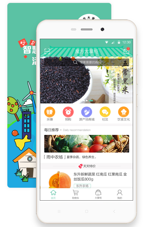 集合城市周邊大中小型農(nóng)場(chǎng)和特色產(chǎn)品供應(yīng)商,通過(guò)魔方大掌柜APP商城購(gòu)物、社區(qū)互動(dòng)、每日簽到、娛樂(lè)賺錢(qián)、預(yù)購(gòu)等,活躍城市小區(qū)人員,線(xiàn)上一鍵下單,線(xiàn)下當(dāng)日把新鮮健康特色產(chǎn)品及時(shí)送到家。同時(shí)覆蓋社區(qū)生活服務(wù)行業(yè),周邊購(gòu)物生活服務(wù)行業(yè),一款集合人類(lèi)生活日常所需的服務(wù)型APP。